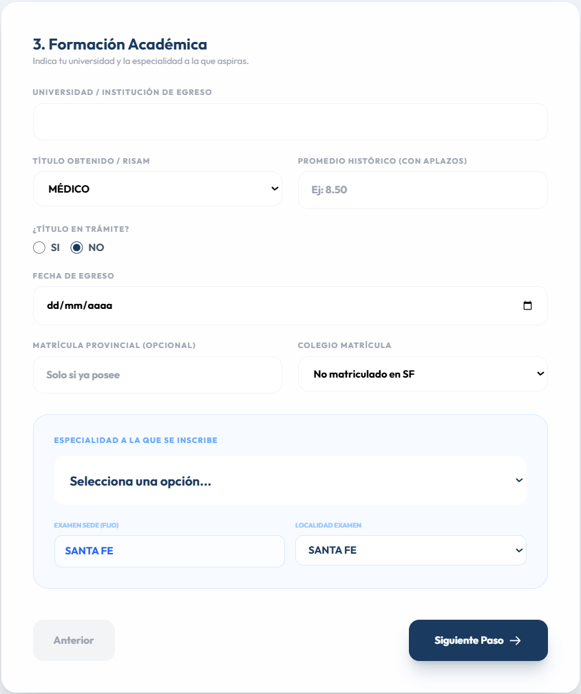 Selecciona con cuidado la especialidad; esta decisión no se puede modificar tras el envío del formulario.